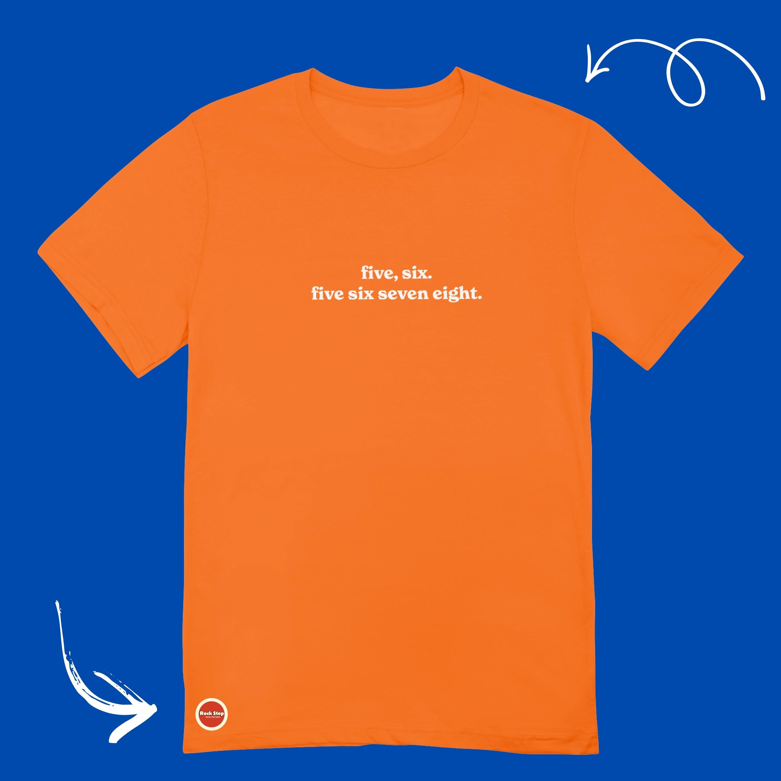 Dansın matematiği;Five, sixFive six seven eightTuruncu rengi oversize t-shirt Rock Step kalitesiyle stoklarda.
